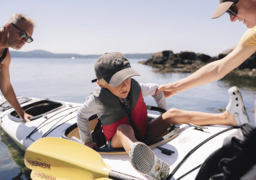 On Turn Island, guests will have the opportunity to hike the perimeter of this beautiful uninhabited island, looking out for otters, eagles and other wildlife while your guide prepares a healthy, produce-forward lunch for your family. When you're back from the hike, engage your guide in a fun discussion about our unique island ecosystem and any friendly creatures you might have met along the way. After lunch and some time on the beach looking for crabs, sea shells and other sea life, you'll get back in your boats and paddle close to shore possibly around Turn Island and the San Juan Island coastline depending on what you and your guide decide will feel right. This tour is appropriate for all ages 2 and up.